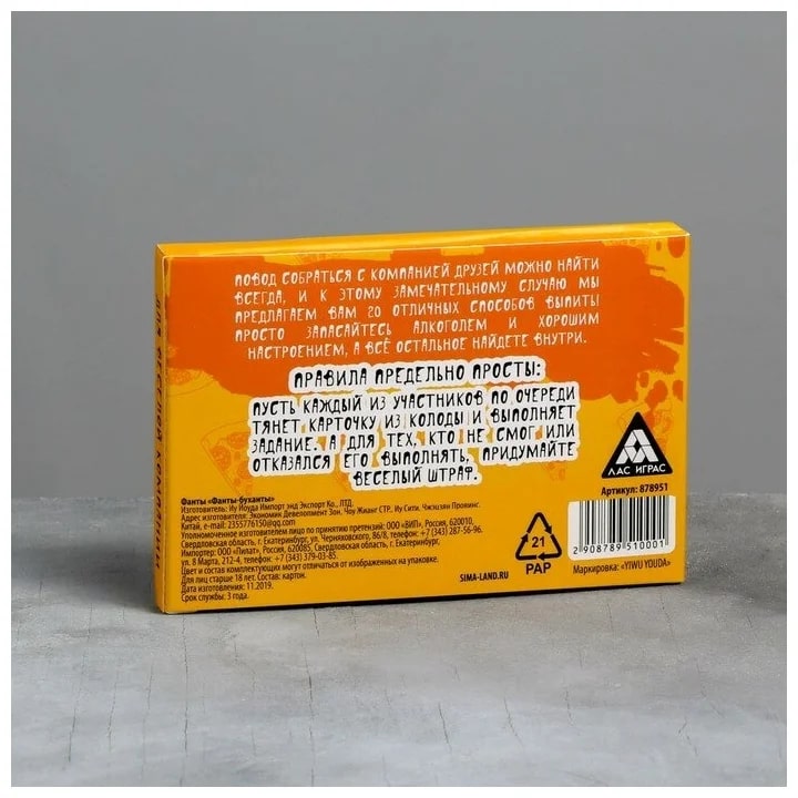 Купить игра для компании "фанты буханты" 20 карт от 100 руб. с доставкой до пункта выдачи в Вичуге. Интернет магазин ДекаМаркет. Оплата при получении.