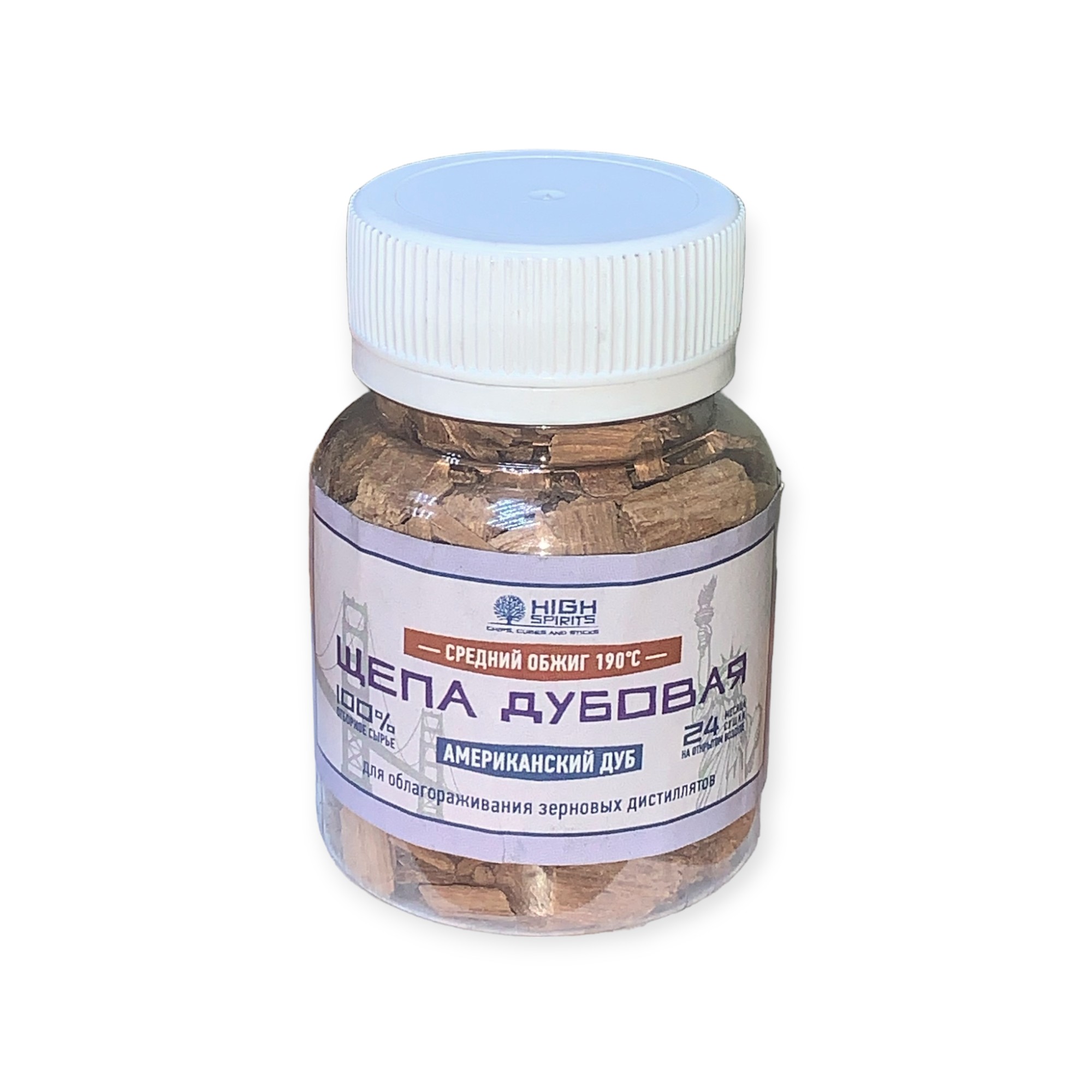 Рекомендуется периодически переливать дистиллят из емкости в емкость для насыщения кислородом и интенсификации созревания спиртов. Щепу изготавливают из высококачественной отборной древесины дуба, высушенной в естественной среде под открытым небом. Щепа обожжена в специальной печи по особой технологии, что гарантирует высокое качество.